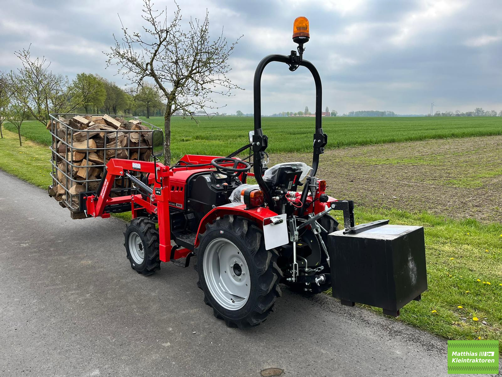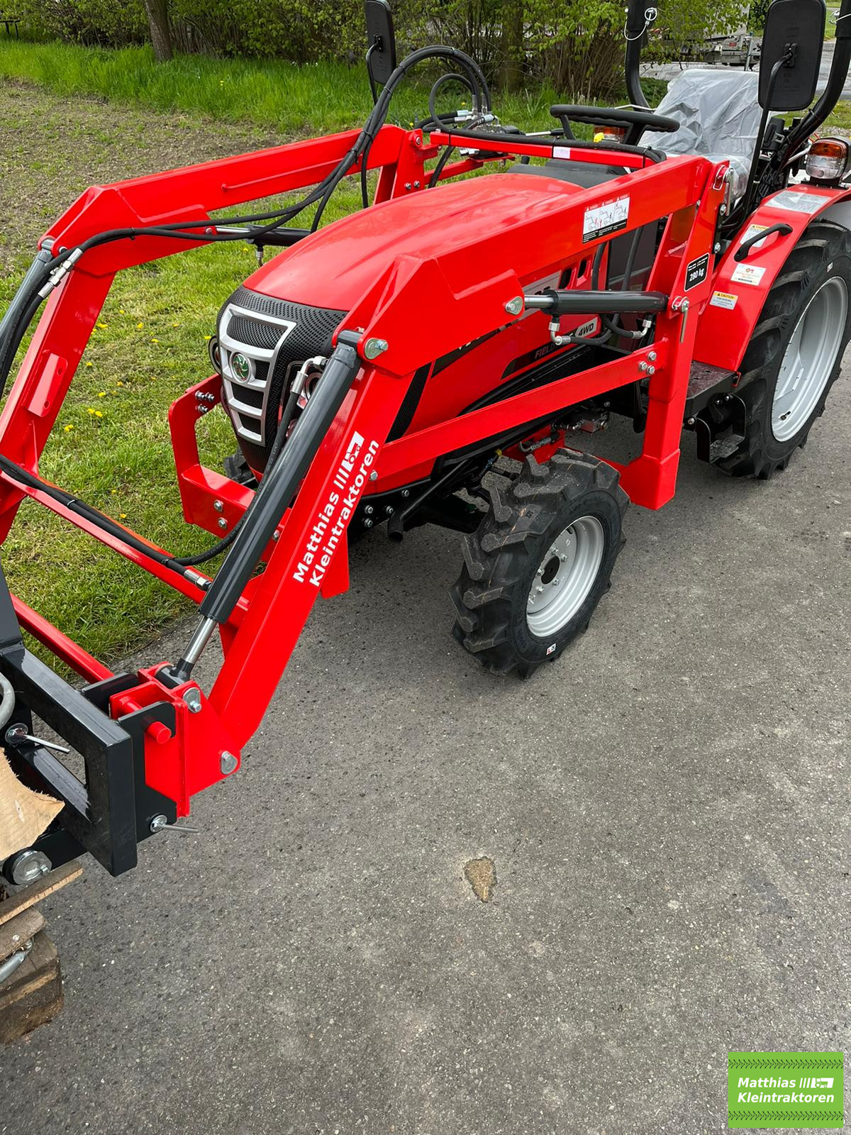 Auf Wunsch mit Industriebereifung, Rasenbereifung, Palettengabel, Mistgabel, Ballenspieß, Krokoschaufel oder zweifach Hydraulikanschluss am Frontlader, Gewichtstein,